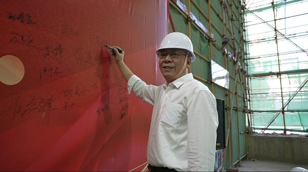 在封頂儀式上,惠州市惠陽區國資事務中心黨委書記、主任劉世海,惠州市惠陽區城市建設投資集團黨委書記、董事長鄭劍偉,以及惠陽建筑工程有限公司總經理席旭輝等領導嘉賓齊聚一堂,共同見證這一榮耀時刻。他們在簽到處簽到留念,留下了對項目的美好祝愿。